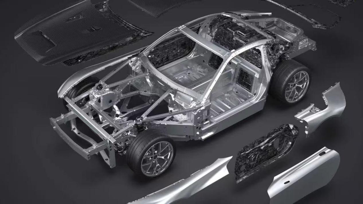 为了平衡车身扭转刚性,GR GT没有像它的前辈LFA那样使用使用了碳纤维单体壳结构,而是使用了全铝车身结构,注意不是只有乘员舱,而是整个白车身均为全铝。而覆盖件(车门.机盖等)则使用了铝加碳纤维的组合结构,至于量产版的具体车重并未讲明,只明确表达会在1750kg以内,而作为参考,现款量产版的911 GT3车重为1488kg,看来丰田并不想像保时捷那样把GT3赛车搬到街道上。