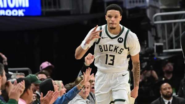 这一次仍然是高位的牛角发起,罗林斯走左侧特纳掩护后,雄鹿后续展开了杰克逊为特纳的Flare无球掩护,罗林斯回球短暂出现空位的特纳命中三分:
