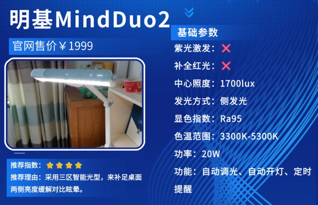 一句话推荐:有读写网课双模式,也可轻触三段式调光调色温,满足不同用光需求。