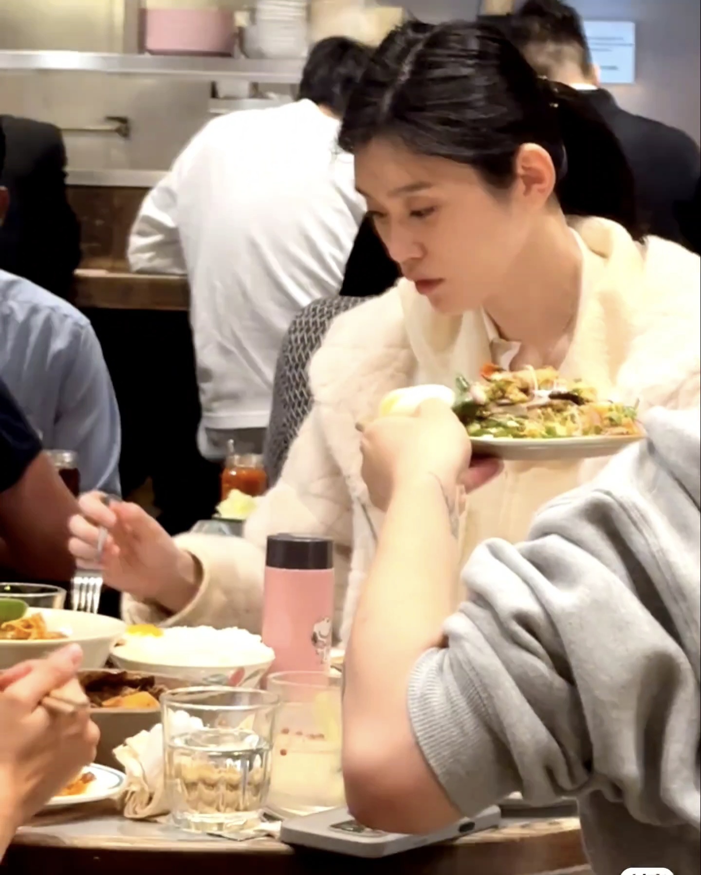 奚梦瑶与朋友小饭馆吃饭,皮肤超好,素颜也很美!