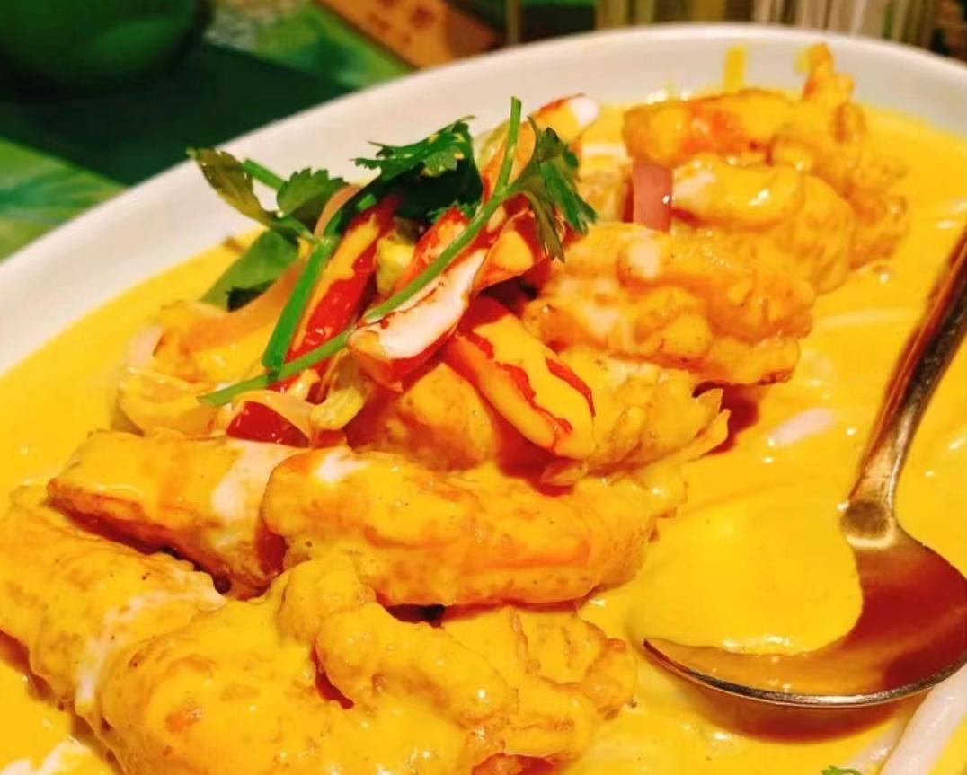 泰餐店的皇牌焖咖喱大虾绝对不容错过。