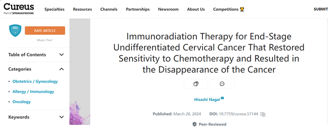 2024年3月28日,医学期刊《Cureus》报道了一例晚期未分化宫颈癌患者通过WT1-DC疫苗+纳武利尤单抗等联合疗法成功实现肿瘤完全消退的突破性病例。