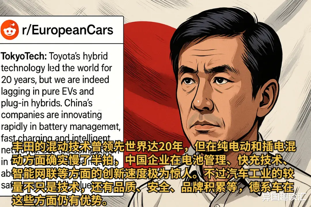 日本网友@TokyoTech从技术导向角度表示:“丰田的混动技术曾领先世界达20年,但在纯电动和插电混动方面确实慢了半拍,中国企业在电池管理、快充技术、智能网联等方面的创新速度极为惊人。不过汽车工业的较量不只是技术,还有品质、安全、品牌积累等,德系车在这些方面仍有优势。"