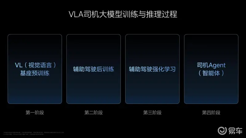 为实现这一目标,VLA的训练分三步推进:首先,基于海量2D/3D图像及交通场景数据构建云端通用感知模型;随后注入真实驾驶行为数据,赋予模型博弈式决策能力;最后通过人类专家反馈优化安全阈值与舒适性,确保算法符合交通法规。