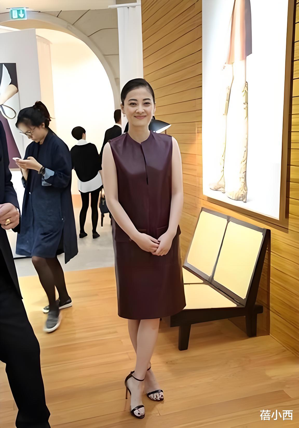 为了化解无袖连衣裙的 “暴露感”,梅婷在细节上做了巧妙处理,她没有戴夸张的首饰,只选了一对小巧的珍珠耳钉,珍珠的温润和皮裙的质感形成对比,增添了优雅气质,发型是低马尾,露出光洁的额头和修长的颈部,还可以让整体造型更显利落。
