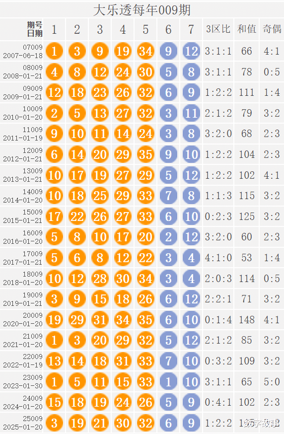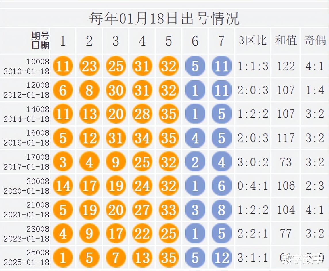 【其他历史数据查询统计】大乐透历史上的今天2026-01-18 星期日 大乐透不开奖每年01月18日出号情况: