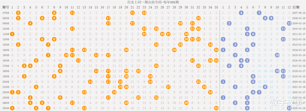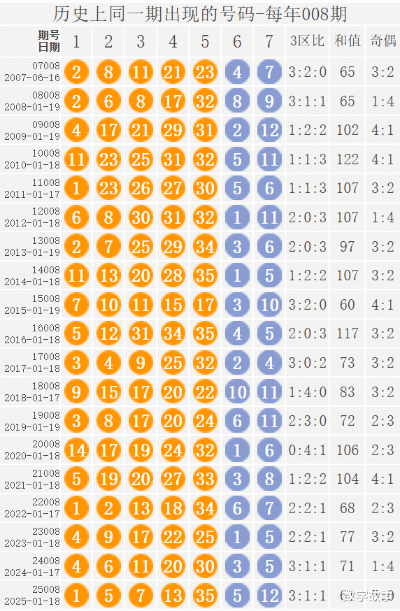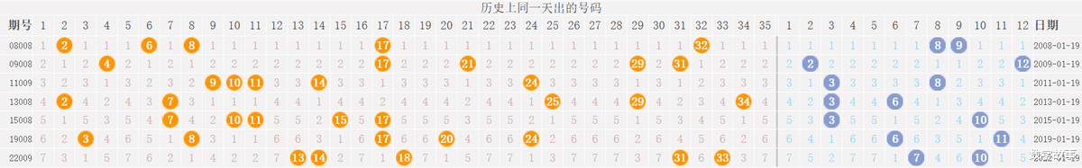 博弈心理,挑战概率: 看近期开奖号码,也可看历史数据统计!【大乐透26008期多角度冷热号】大乐透26008期四维走势图,前后区号统计及冷热号1) 历史同一天:01月19日 (共7期)