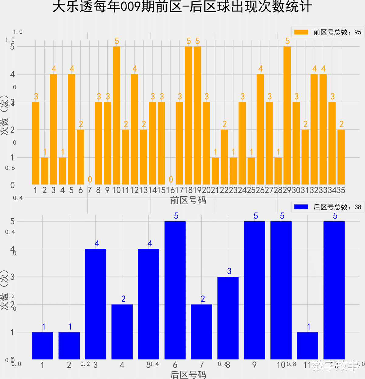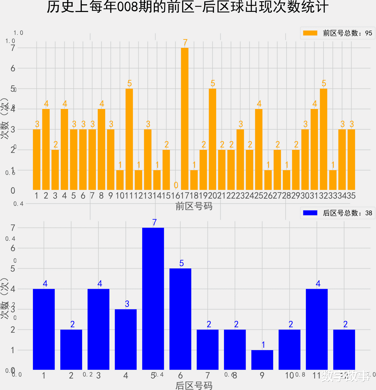 统计每年008期的样本数据: 95个前区号 38个后区号