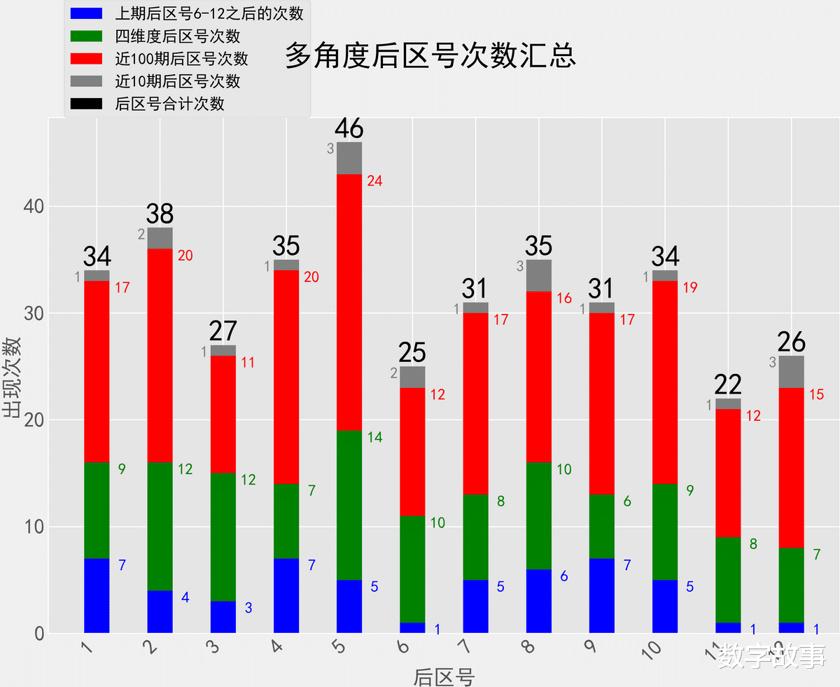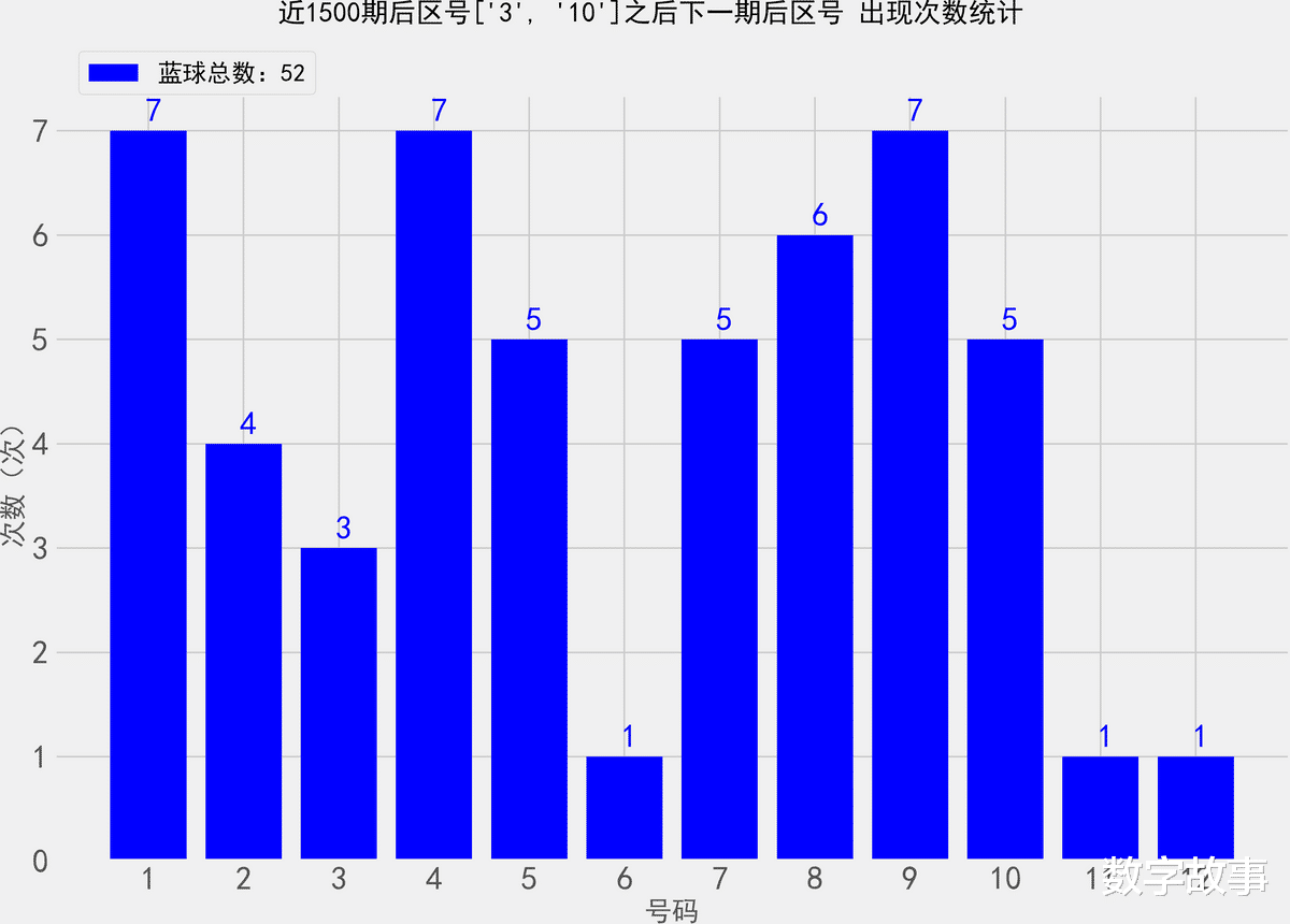 统计近1500期后区号3-10之后, 各后区号的出现次数大乐透26007期后区号是3-10找出近1500期后区3-10号之后,下一期出现的所有后区号,统计其出现次数。除开这一期,共出现了26次3-10后区号那么统计的样本数据是52个