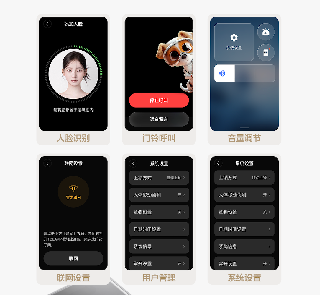 除了简单易用的超大触屏交互之外,TCL K11D Pro还支持“AI语音录入”功能,用户无需在屏幕上进行操作,只需通过简单的语音指令即可完成“添加人脸”、“门铃音量调到大档”、“录入密码”等功能设置。这种“仅需动动口”就能完成设置的交互方式,不仅提升了使用效率,更在细节中体现了技术服务于人的温情。