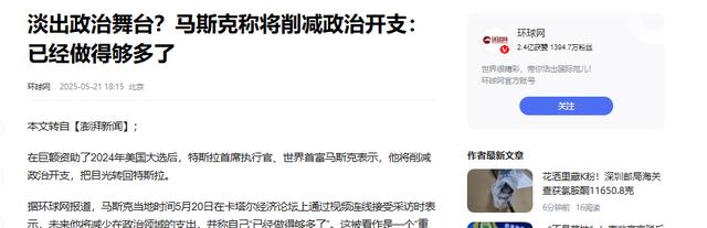 老马开始减少政治捐献,明确表示未来要在政治支出上 “刹车”。
