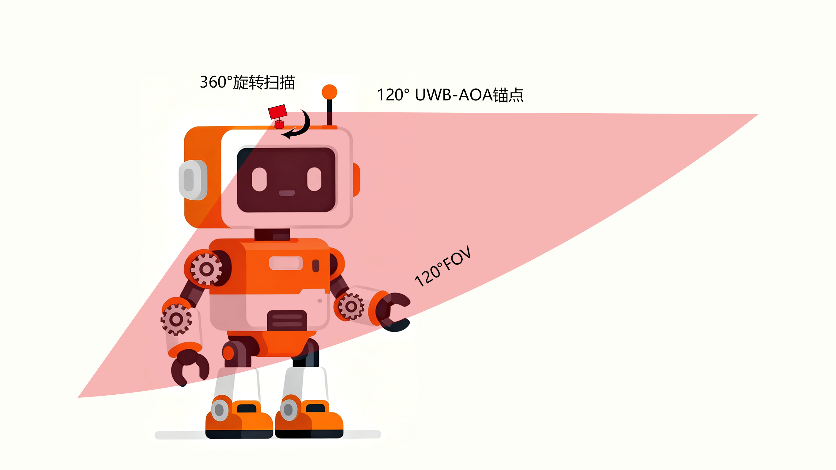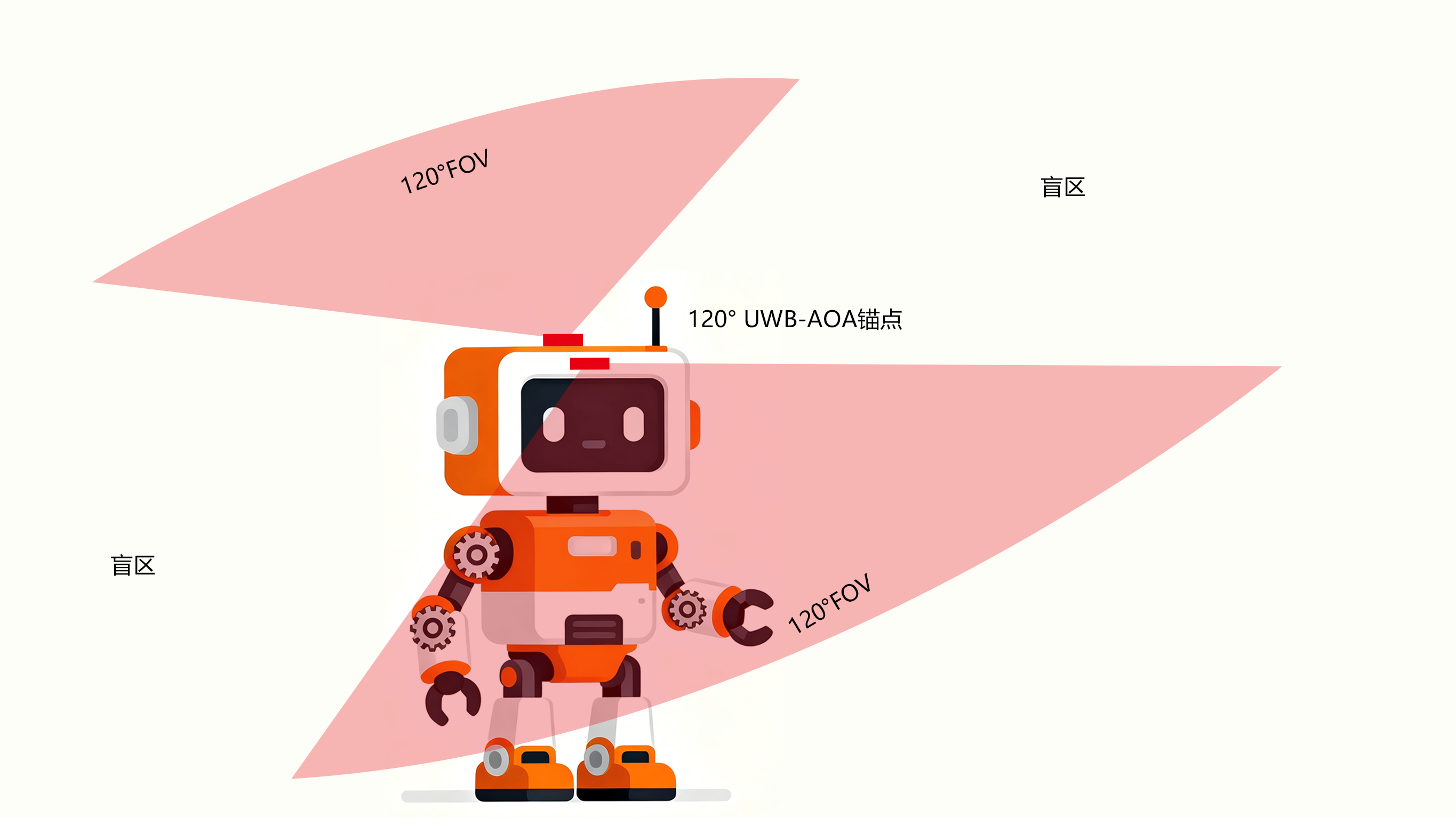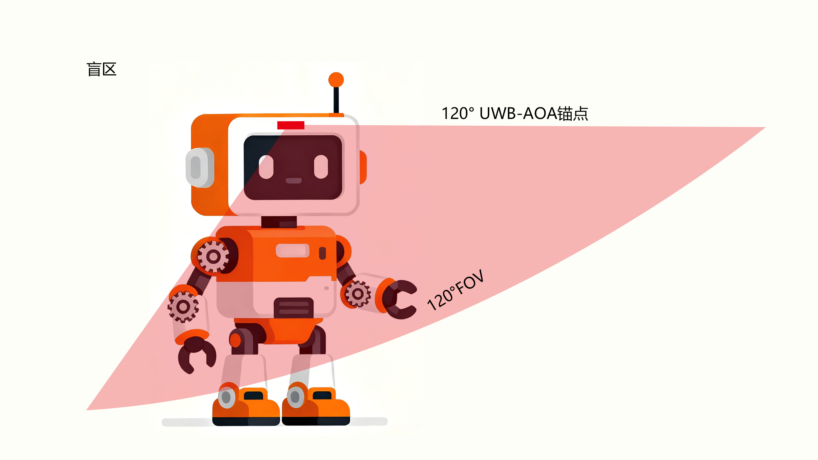 这是在机器人前方安装一个具有120度广角探测能力的UWB锚点。它成本最低、功耗小、开发快,特别适合那些主要需要在前方一定范围内实现稳定跟随的应用,比如家庭陪伴机器人、教育机器人,是预算敏感项目的务实首选。
