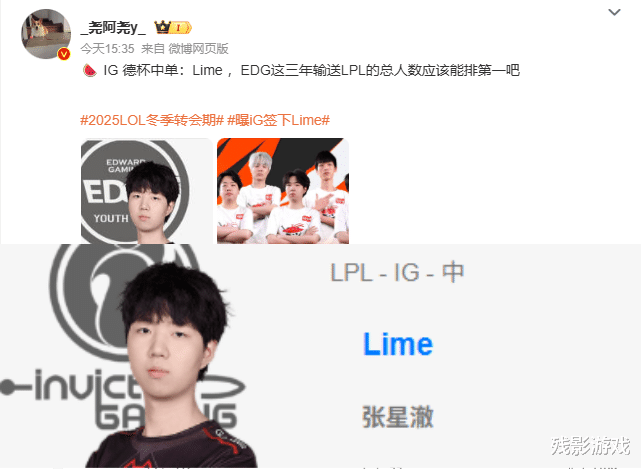 至于上单位,被爆出的人选是soboro,但还没有官宣,而且OPGG也还没更新,所以还不好判断。但在前RA经理的爆料中,IG还有一位引援,那就是EDG的青训中单选手Lime。目前该选手的信息OPGG已更新,基本是不会有太大问题的,而他的加入也是为了跟随IG参与德杯,Rookie前期还是会选择休息。这样来看的话,此次德杯大概率只有小Wei会选择参赛了,其余几位老队员怕是都休息了。
