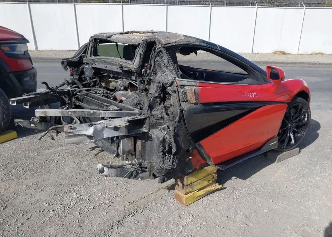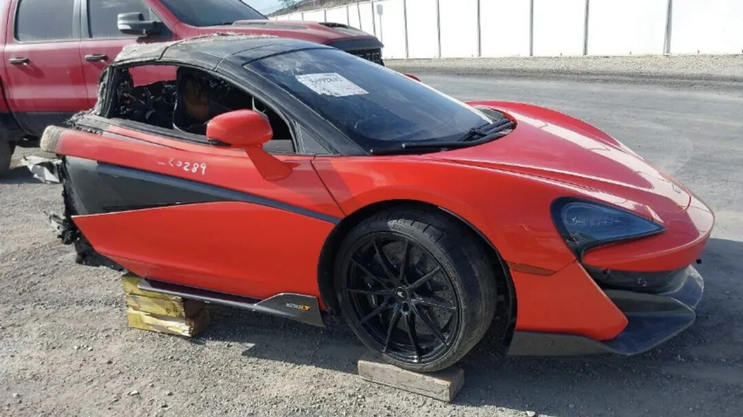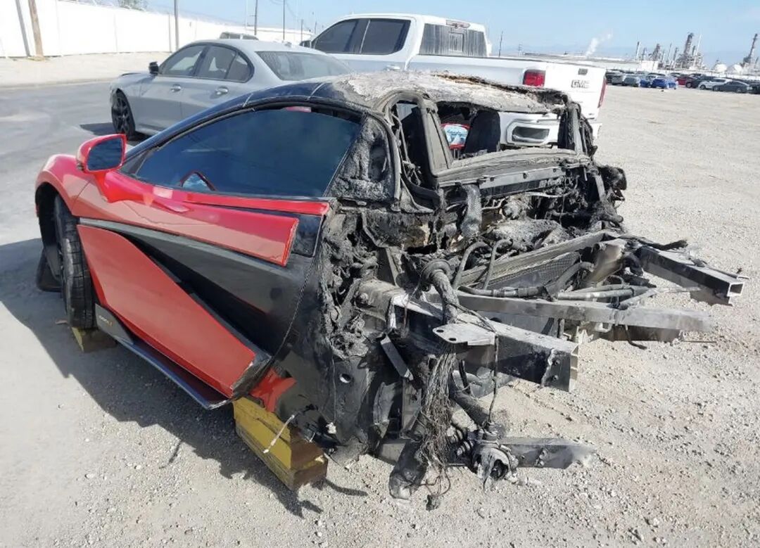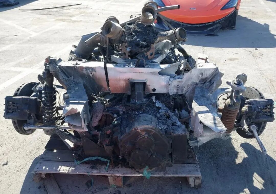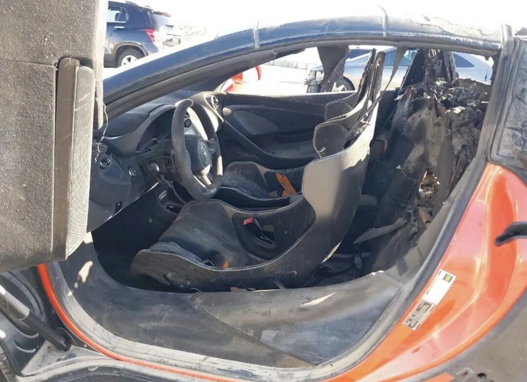 编号40177751是一辆2020款迈凯伦600LT,它即将被拍卖,而它只剩下了曾经的一半。发动机倒是还在,不过用保险拍卖平台IAAI的话说,它已经“外焦里嫩”了。
