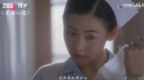 《星语星愿》里,穿着护士服,摘掉口罩,露出懵懂表情的她;