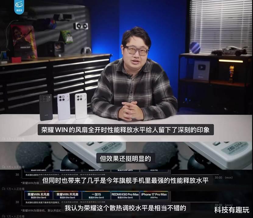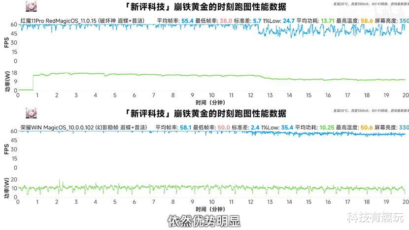 在“新评科技”的测试结果中:荣耀WIN在其测试的五大游戏中全部满帧运行,且全程未降低屏幕亮度。特别是在压力极大的“崩铁”黄金时刻跑图中,荣耀WIN对比此前同样带风扇的游戏手机,也更胜一筹。这种“稳中稳”的表现,充分证明了荣耀WIN系列在性能调度上的深厚功力。