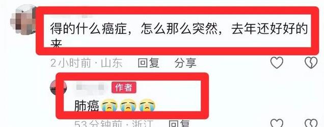 该圈外好友在社交平台分享了多张跟郑铮的合照,有网友就在评论区问,“得的什么癌症,怎么那么突然,去年还好好的”,她回复“肺癌”。