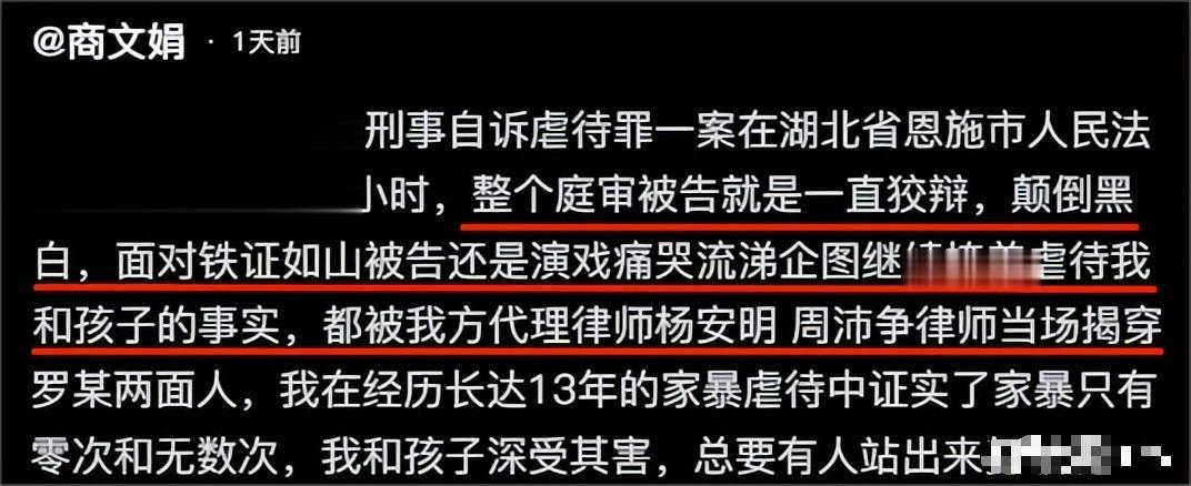 他的辩护律师更是语出惊人,轻描淡写地将商文娟求生的报警、拨打市长热线等行为定义为“不良行为”。