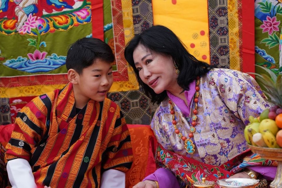 不丹的老国王吉格梅・辛格一生共有四位妻子,而且这四位妻子还是亲姐妹,她们是同时被迎娶进王室的,所以并不能按照常规的 “第一任”“第二任” 等方式来区分描述她们。在这其中,现年 65 岁的次仁・扬敦地位颇为特殊,由于她生下了国王的长子吉格梅・凯萨尔・纳姆耶尔,也就是如今的不丹国王,所以从某种意义上来说,她可算是正宗的王太后,自然也是吉增・佩玛的 “亲婆婆” 了。但即便如此,在王室的礼仪规范下,她也需对另外两位婆婆 —— 多吉・旺姆和桑盖・却登给予应有的尊敬。事实上,像吉增・佩玛这样同时与三位婆婆同框的画面,在平日里倒也并不常见。