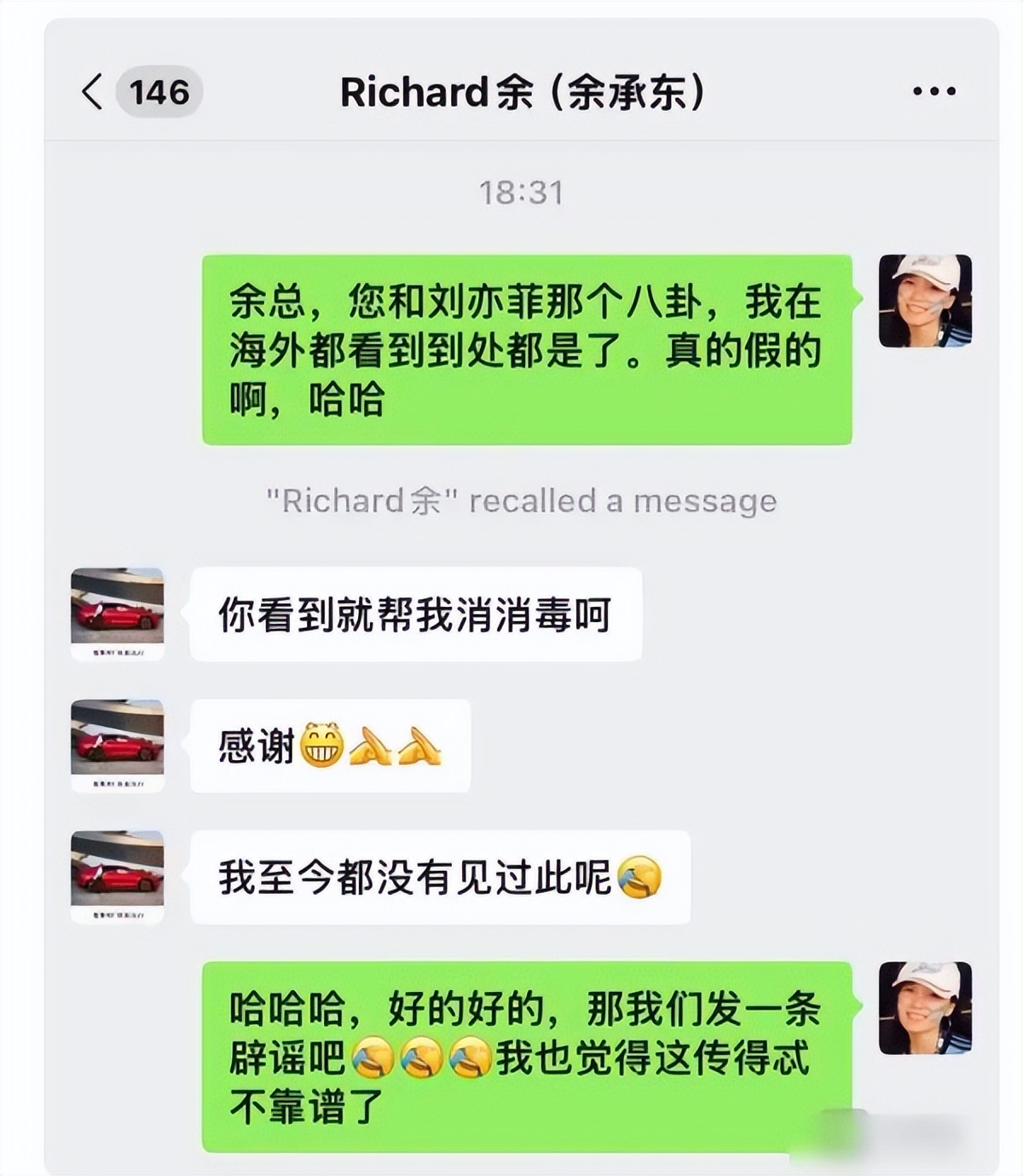 眼看绯闻传得越来越离谱,余承东的好友就向余承东本人求证,毕竟还是要听当事人的说法的。