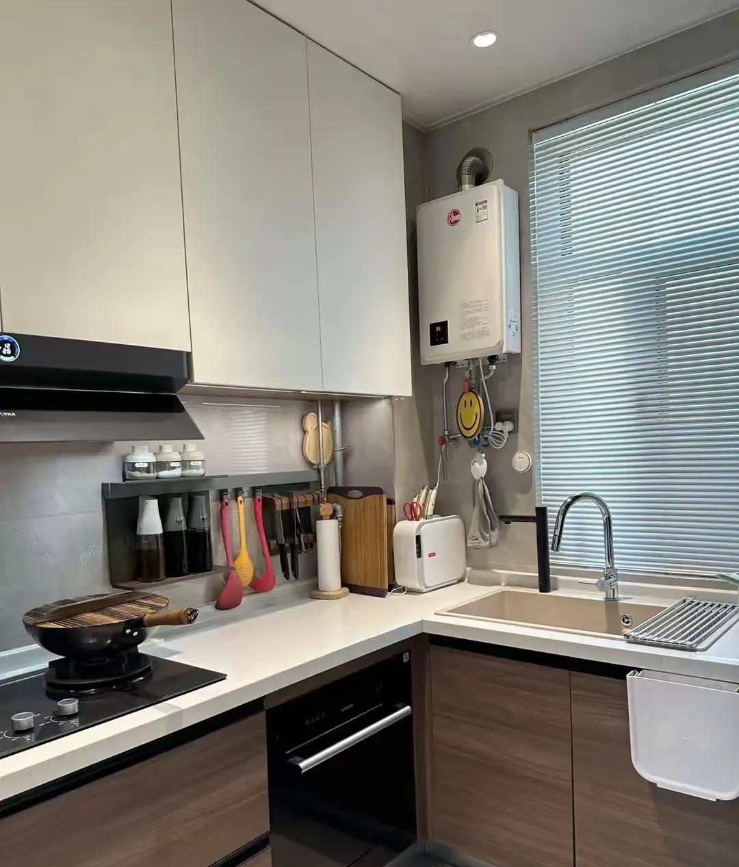 厨房是一个需要进行大量操作的地方,装修设计需要考虑到厨房的使用功能和安全性,还要有一定的储物空间,方便放置各种厨房用品。