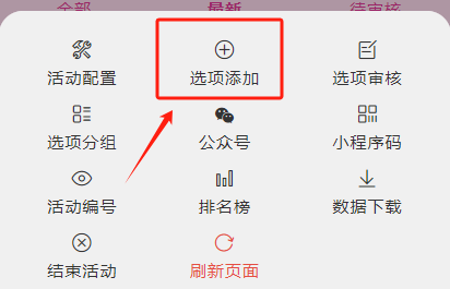 活动发布后,在活动内的管理功能,点击【选项添加】上传候选人信息,支持上传图片或视频作品,不限制作品个数,不限流量。