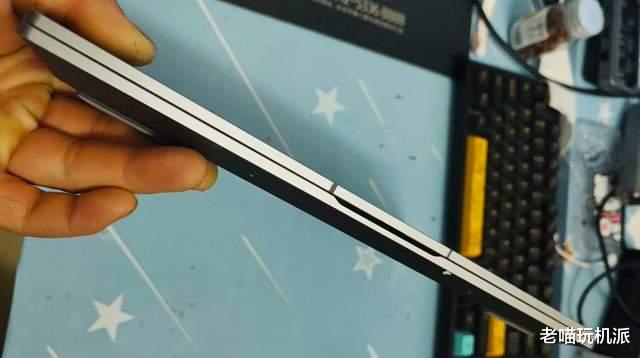 无界系列经典模具设计。拆包装取真机,小编拿到手的这台无界14pro是二手机器,八新,外观保存较为完美。和其它无界系列机型一样,它们共用一套模具,比较突出的特征是机身全金属配置,磨砂外壳表层喷涂,窄边框的屏幕布局,键盘处有居中的电源键,手感反馈明显的背光键盘等。根据处理器版本区分,a卡的机型在键盘设计上有些许不同,不影响操作与使用。机身做到了19.3mm厚度与1.4千克重量,属于轻薄本里很普通的设计。