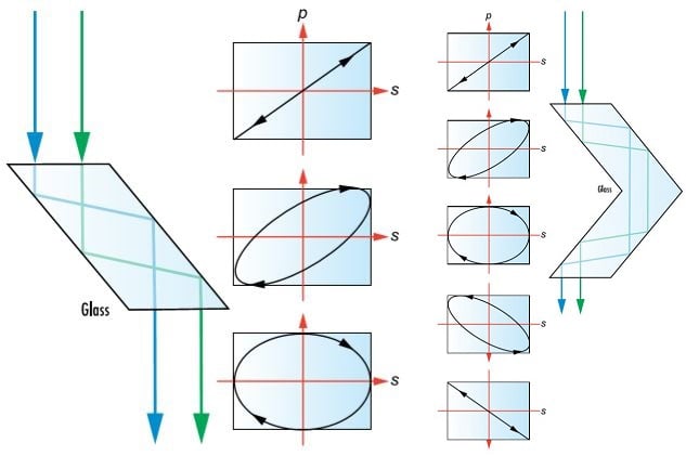 • 原理:它不是靠双折射,而是利用棱镜内部的全反射产生相位延迟。