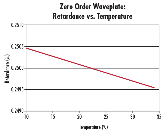 图6:λ/4零级波片在632.8nm的延迟与温度的关系