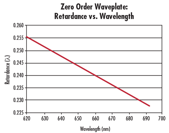 图7:λ/4零级波片在632.8nm的延迟与波长的关系