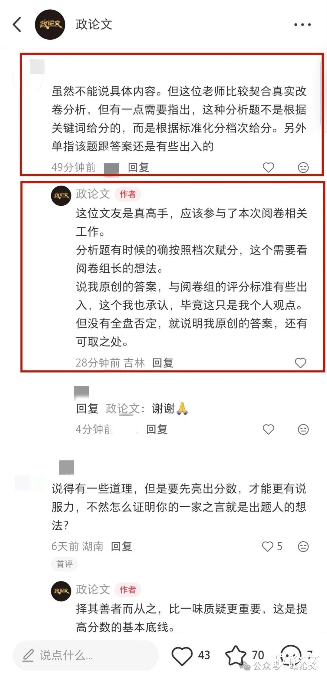 但是,其中一位文友提出了自己的观点,我感觉很有价值。因为如果你略通申论,就可以通过这位文友在字里行间的具体内容,特别是“标准化分档次”等表述,就可以感受到这位文友对申论有比较深层次的接触和把握。