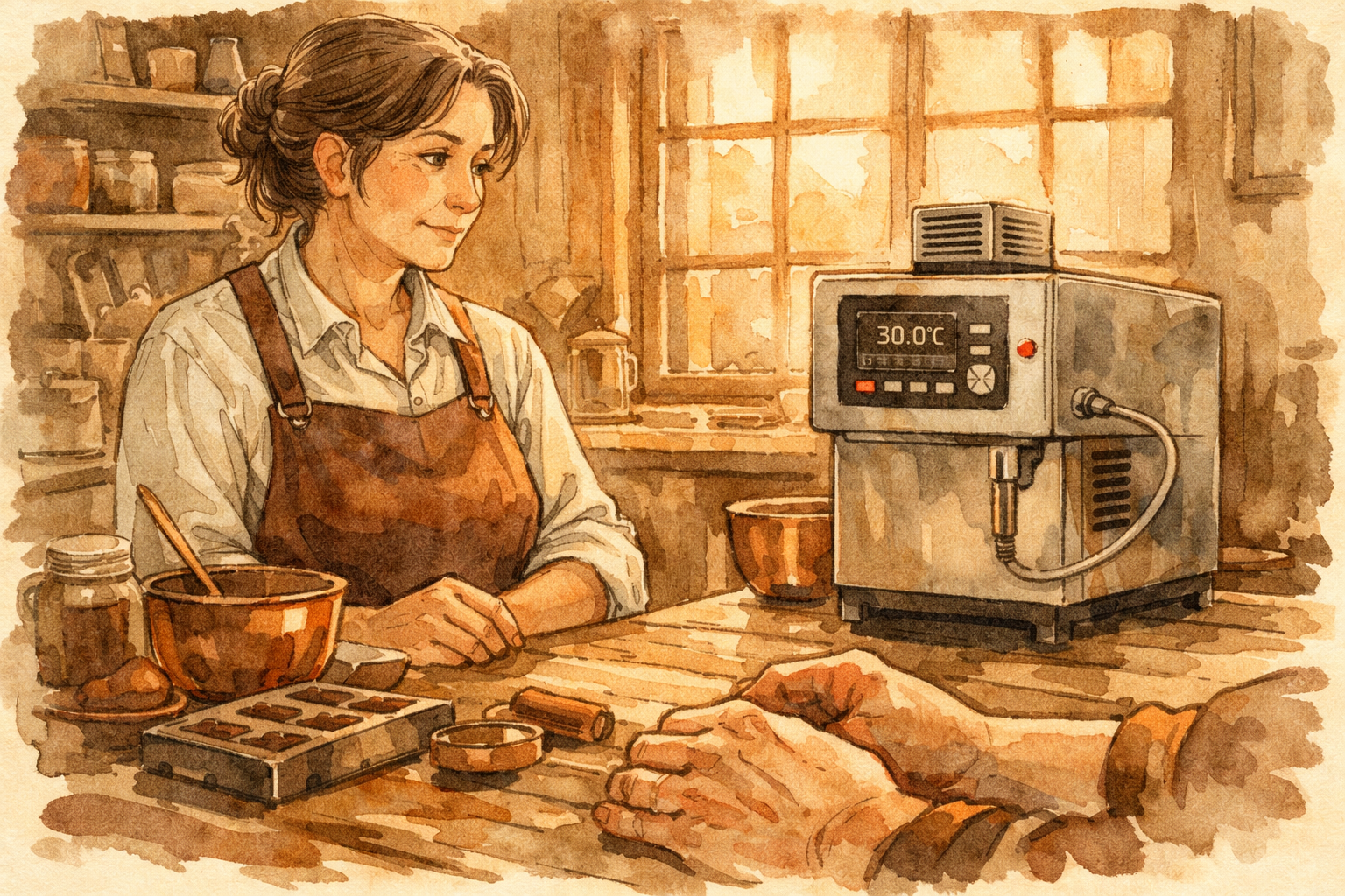 它唯独做不到的,是在凌晨四点, 当整个城市还在睡觉的时候,一个人单独待在作坊里,听可可豆在研磨机里发出的声音,闻巧克力浆在铜锅里慢慢融化的香味,感受那种和食物交流的时刻。