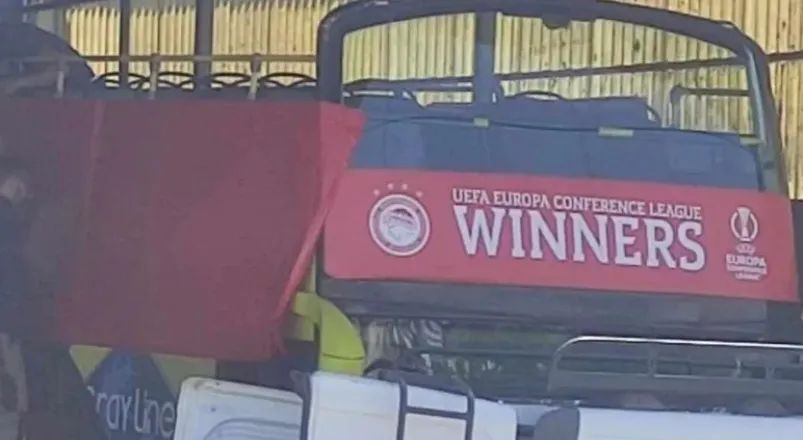 据当地球迷拍到的照片,已经有一辆为奥林匹亚科斯夺冠而准备的巴士,上面印着“欧协联冠军”和队徽等元素,似乎在静待主队的捧杯时刻。