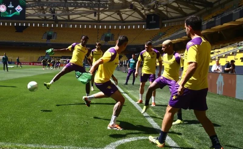 从奥林匹亚科斯主场开车到AEK竞技场,只需24分钟,两者相距仅14.2公里,可以说这里是奥林匹亚科斯的“半个主场”。客队佛罗伦萨在当地时间5月27日傍晚才抵达雅典,5月28日早上他们在AEK竞技场进行了适应场地训练。