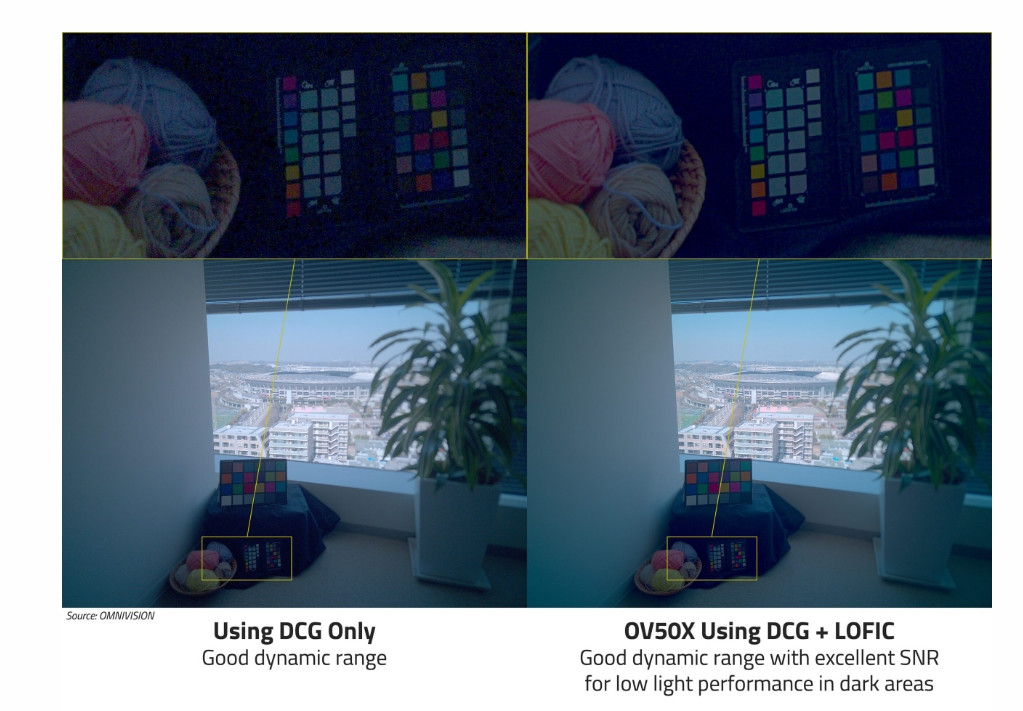 - 支持DCG+LOFIC,以及10/12/14-bit RGB RAW,使用豪威的TheiaCel,可以完成当今手机上最高的110dB动态范围的单帧曝光HDR(省流:最强的动态范围/HDR);