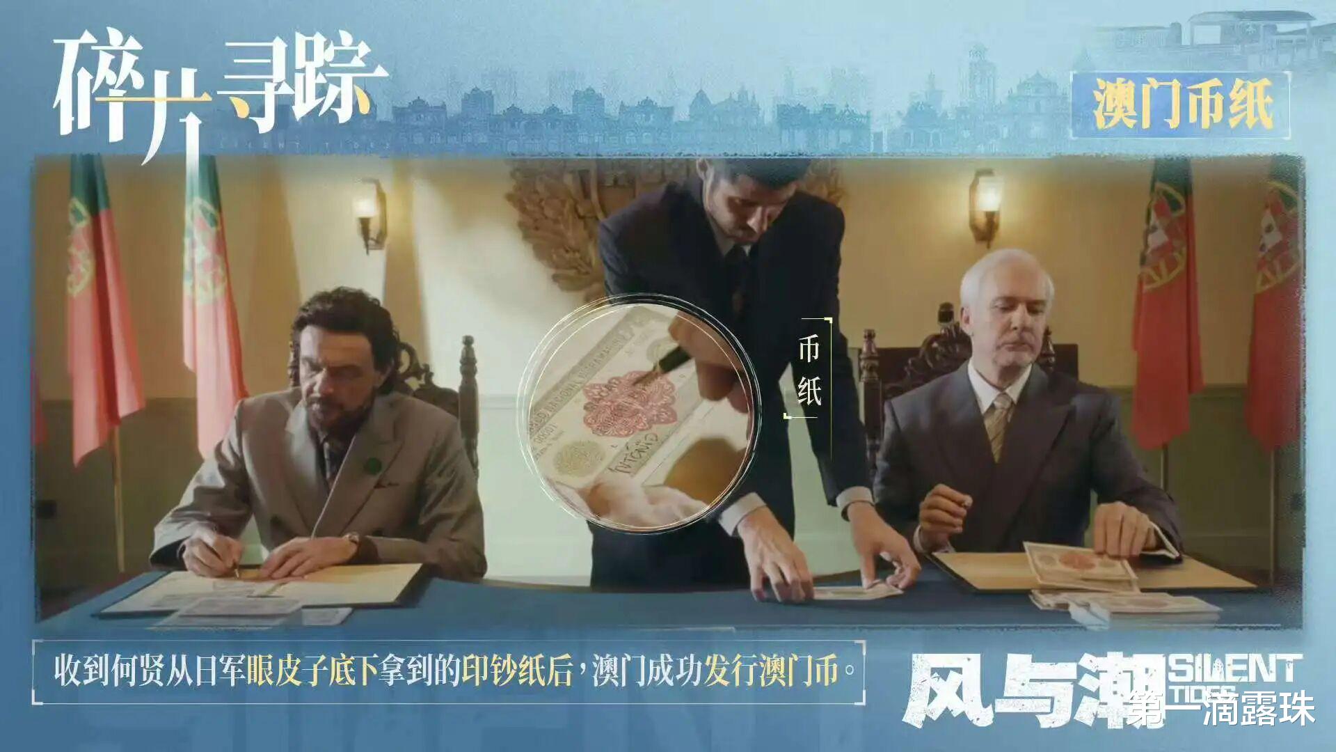 抗战金融谍战剧《风与潮》第19集中,因为何贤他们冒死抢回印钞纸,澳门很快就发行了新澳门币。