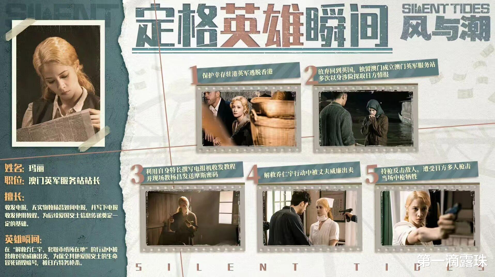 《风与潮》中,新西兰籍华裔演员徐嘉雯饰演的玛丽,就是这些外国正义人士中的一位。玛丽为了印钞纸而英勇殉职的故事,不知道让多少观众落泪。