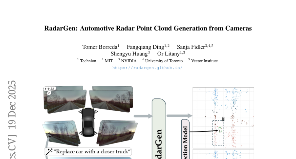 这个难题困扰了整个自动驾驶行业多年。直到最近,来自以色列理工学院、MIT、英伟达、多伦多大学和Vector研究所的国际研究团队,在2025年12月发表了一篇名为《RadarGen: Automotive Radar Point Cloud Generation from Cameras》的突破性论文。他们开发出了一种神奇的技术,能够仅仅通过摄像头拍摄的画面,就生成出逼真的雷达数据。这就好比一位画家能够仅凭观察一个场景的照片,就准确描绘出该场景在红外线下的模样。