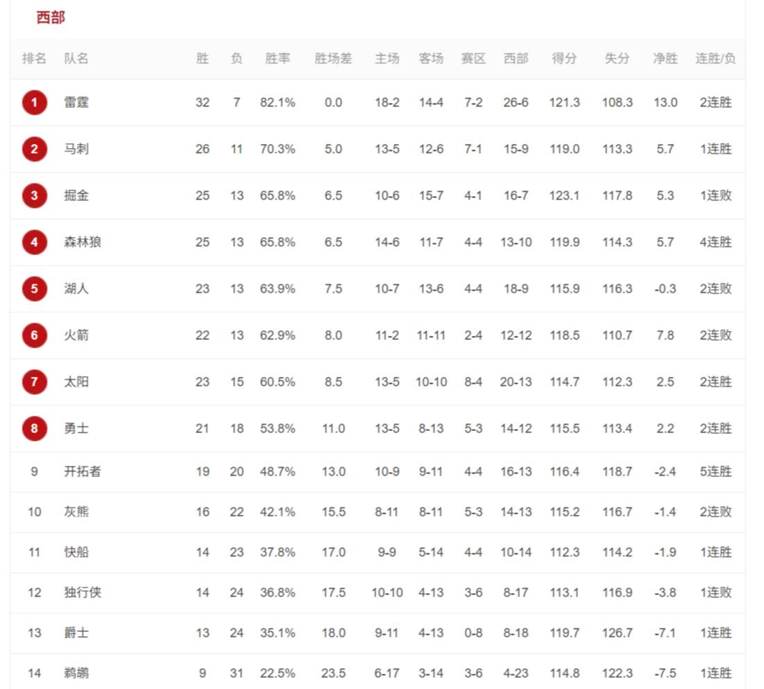 这次结束的其他比赛,勇士137-103大胜国王,掘金87-110不敌老鹰,湖人101-105不敌雄鹿,快船121-105击败篮网,太阳112-107力克尼克斯,雷霆队继续排名西部第一,马刺队排名西部第二,湖人队下降到西部第五,火箭队排名西部第六,勇士队继续排名西部第七,快船队继续追击身前的对手,目前他们距离西部第十的灰熊还有两个胜场。