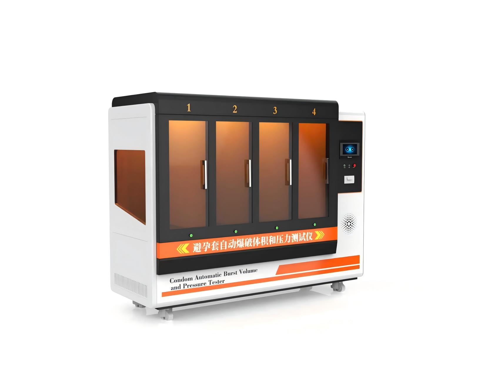 通过气泵向避孕套充入压缩空气,实时记录爆破瞬间的体积(0-60L)和压力值。