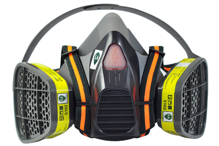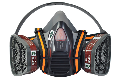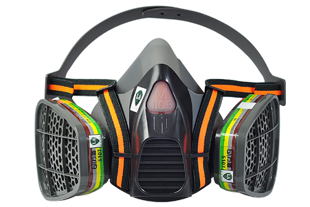 佩戴时将面罩贴合面部,由下巴向上戴好,调整头带松紧度,保证面罩与面部无缝隙,胡须、头发不得影响密封。随后进行气密性测试,用手堵住滤毒盒进气口缓慢吸气,面罩内陷且无漏气即为密封良好;堵住呼气阀呼气,面罩微鼓不漏气方可使用。作业中若感觉呼吸阻力增大、异味、头晕,应立即撤离现场更换滤材或检查面罩。