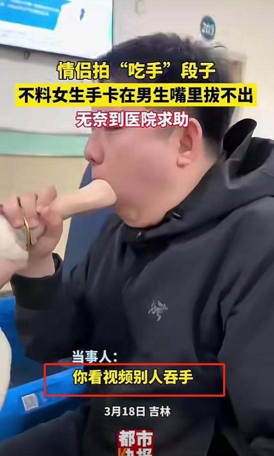 最近吉林这对情侣火了,不是因为浪漫的爱情故事,而是因为一件让人啼笑皆非的事——他们模仿网络视频玩“吃手”游戏,结果女生一拳塞进男友嘴里,拔不出来了! 这突如其来的“爱情考验”,让不少网友笑到肚子疼,也引发了我们对爱情、生活、以及网络挑战的思考。 毕竟,谁也没想到,爱情的表达方式,竟然还能这么“惊险刺激”。