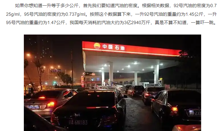 1升汽油等于多少公斤?中国一天消耗多少升汽油?