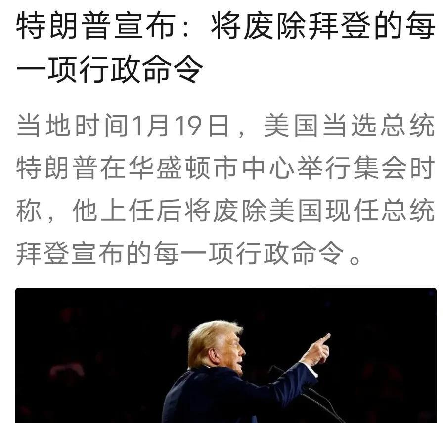 新一届总统特朗普上任后,立刻宣布要废除拜登发布的每一项行政命令。