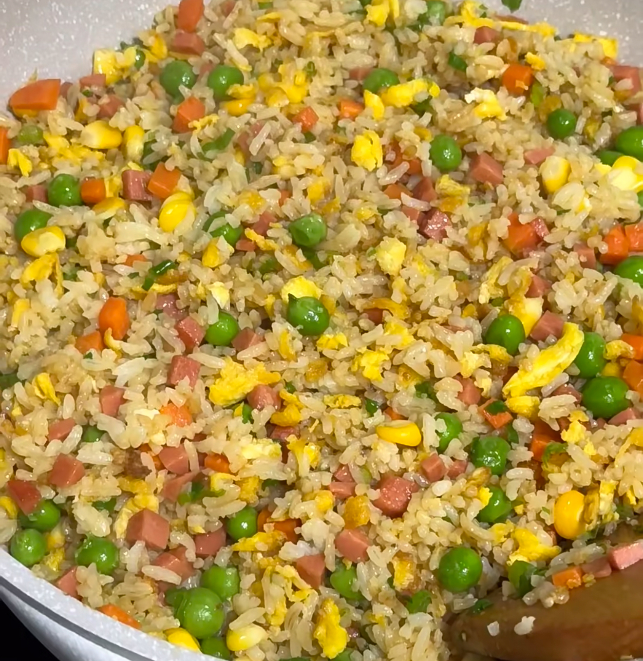 火腿丁要切成边长半厘米的小方块,如同散落在画布上的红宝石。鲜虾剥壳时记得保留尾尖,焯水后蜷曲成优雅的弧线。青豆与玉米粒需提前焯至七分熟,保持翡翠般的脆嫩。最点睛的是那勺猪油,在热锅里融化时泛起琥珀色的光泽,这是老扬州人传承的香气密码。
