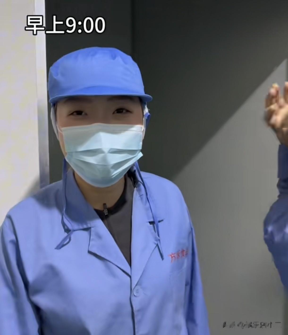 大妹是会搞节目效果的,她和海军妈妈穿上了工作服来到加工车间伪装成工人。