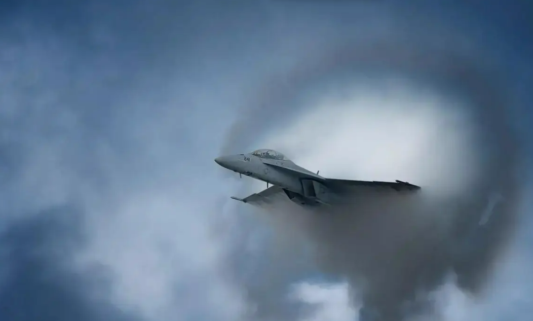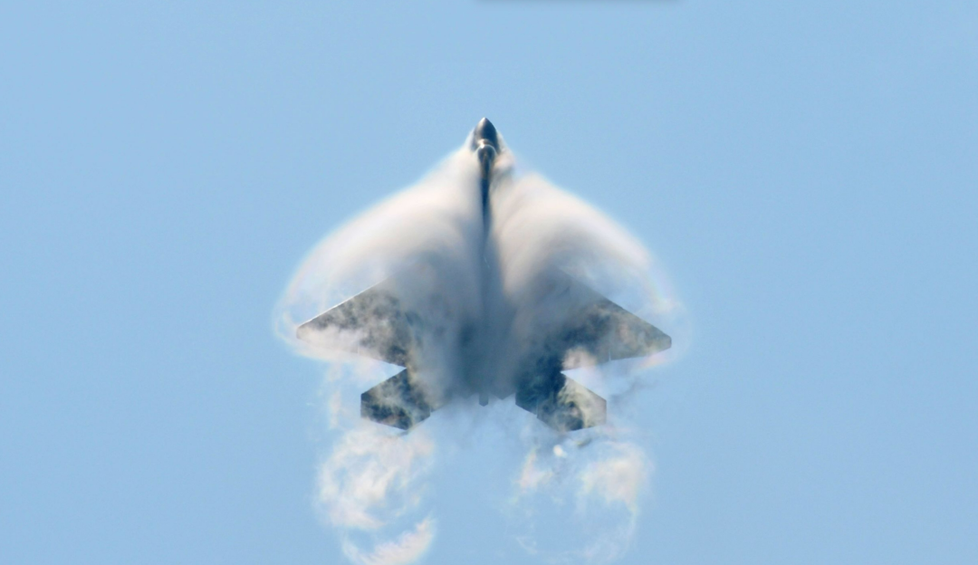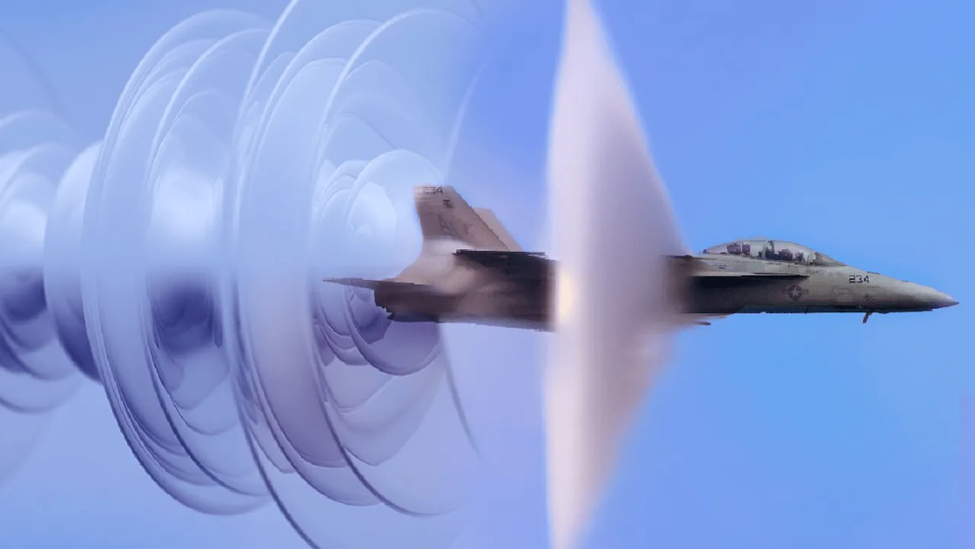飞机在执行高超音速飞行的时候,会产生非常高的压力波,造成飞机周围的空气共振且频率十分高,传到地面如同雷鸣般的爆炸声,并且其尾部会出现圆锥形状的音爆云,场面十分震撼。