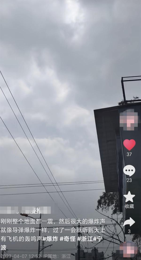 “平地惊雷”形容近段时间,在我国河南,山东多地发生神秘巨响一点也不为过,4月7日在我国浙江宁波空中发生神秘巨响,一名网友发视频称:“刚刚轰隆隆一声巨响,震得窗户哐哐响。”