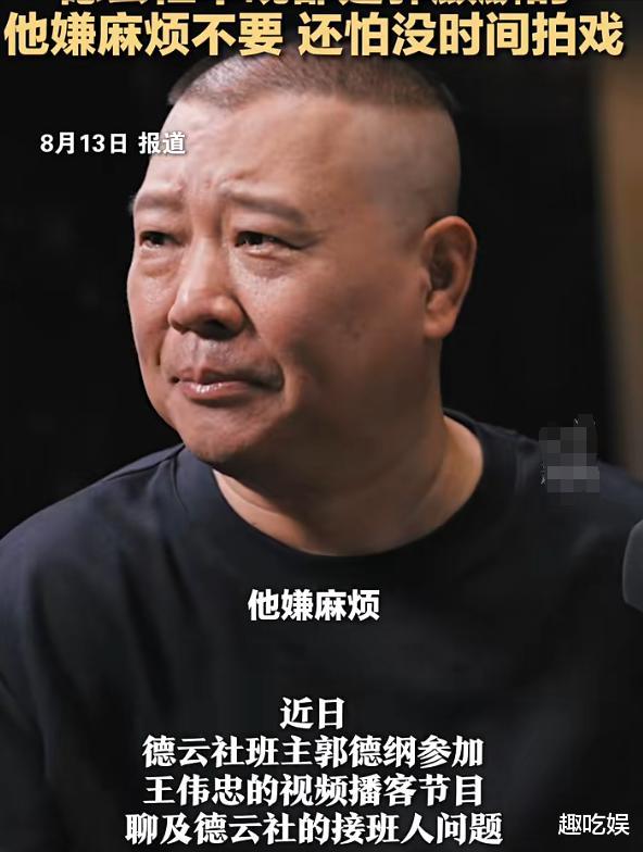 而这波继承之战的起源,则源于郭德纲在节目中的一句:德云社早晚是郭麒麟的。但他嫌麻烦不要,没有时间拍戏。