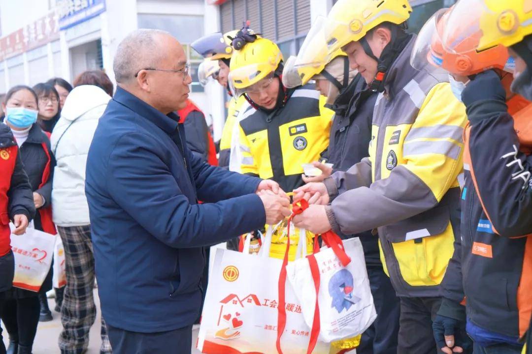 “每天这么跑,身体吃得消吗?一个月能休息上几天?”慰问组一行关切地询问着到场外卖小哥的情况。一位小哥搓了搓有些冻僵的手,笑道:“跑惯了还行,就是休息日少,一个月也就两三天能安心歇着。”话语实在,道出了这一行的艰辛。慰问组仔细倾听大家关于配送难题、收入稳定性等方面的诉求,并逐一为30名新就业形态劳动者代表送上慰问品,随后反复叮咛:“大家辛苦了,工作再忙,安全永远是第一位。路上跑,要格外当心。往后遇到什么难处,别忘了工会这个‘娘家’,随时可以来找。”
